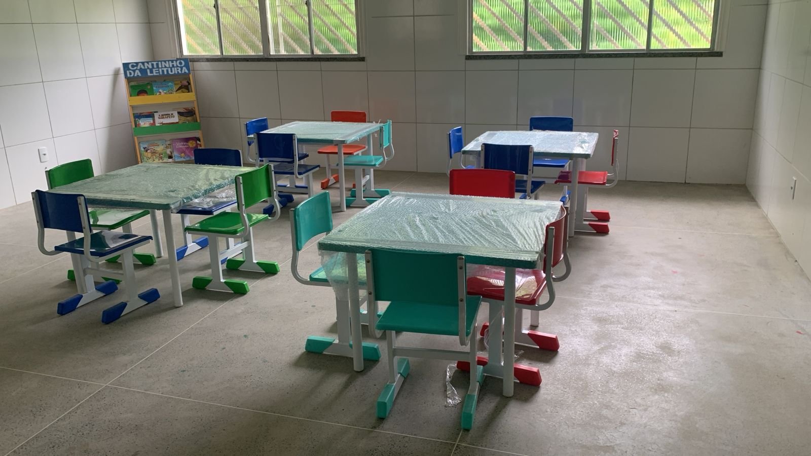 A movimentação não ficou restrita à via de acesso. No anexo da Escola Municipal Malaquias Reis, que atende crianças do povoado, o cenário também é de renovação. Novas carteiras chegaram às salas da educação infantil, acompanhadas de mesas, cadeiras e kit completo para professor. O mobiliário substitui peças antigas e desgastadas e oferece mais conforto e organização no ambiente de aprendizagem.